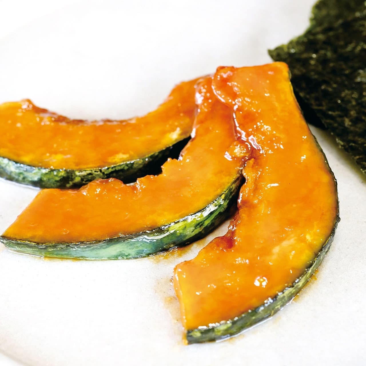 ③フライパンにオリーブオイルを熱し、かぼちゃを入れて両面を焼き、②を加え、フライパンをゆすりながら全体が絡まるようにする。