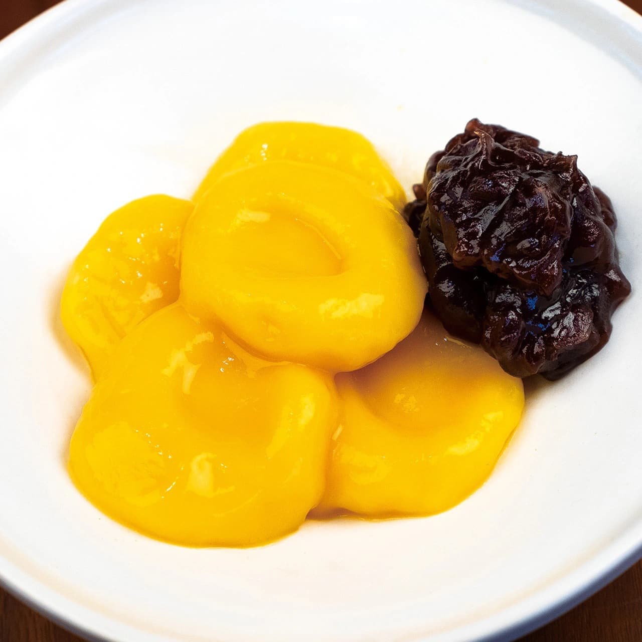 ⑥お皿にゆであずきと一緒に盛り付ける。